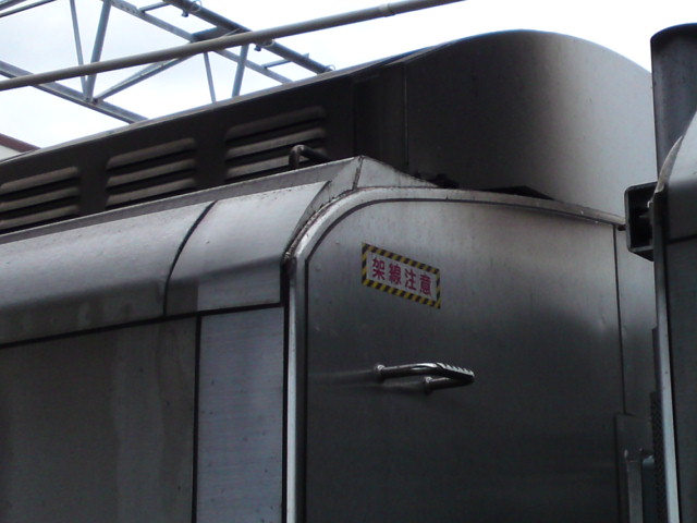 またまた縦アングルで撮影。キハ189-1の乗務員室扉・・・から何やら怪しげなパイプが(汗)。
