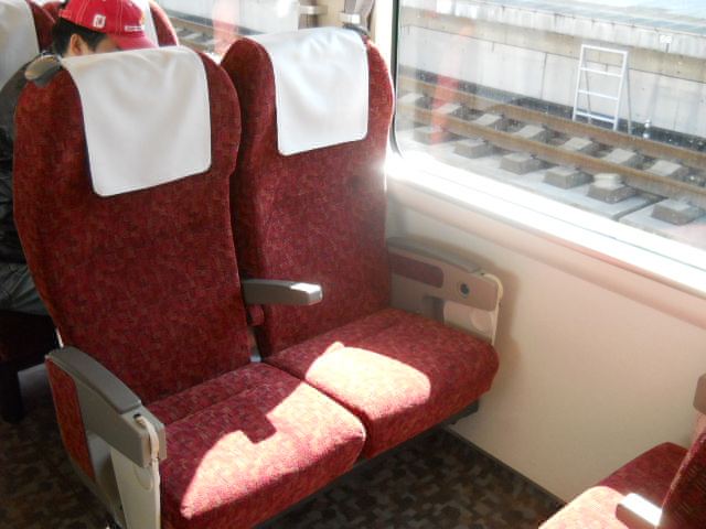 姫路方先頭車(キハ189-1003だったかな)で普通車の座席はこんな感じ。