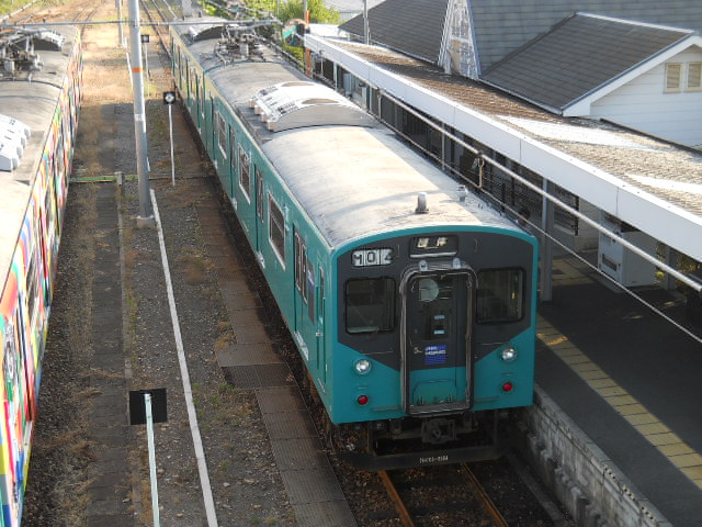 西脇市に到着。乗り換えの陸橋の上から乗ってきた103-3550を1枚。
