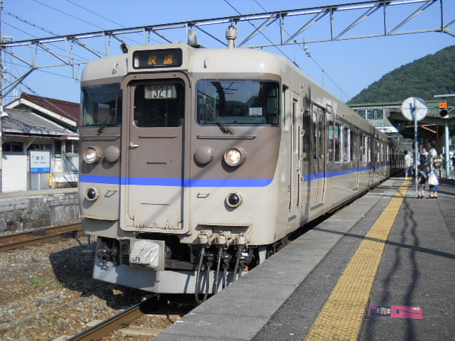 113系カフェオレの6連。ドアがこの季節でも篠山口まで半自動になってました。