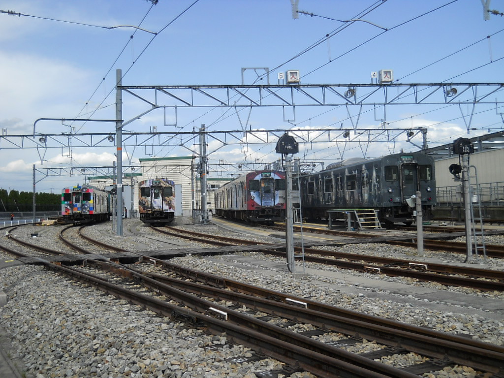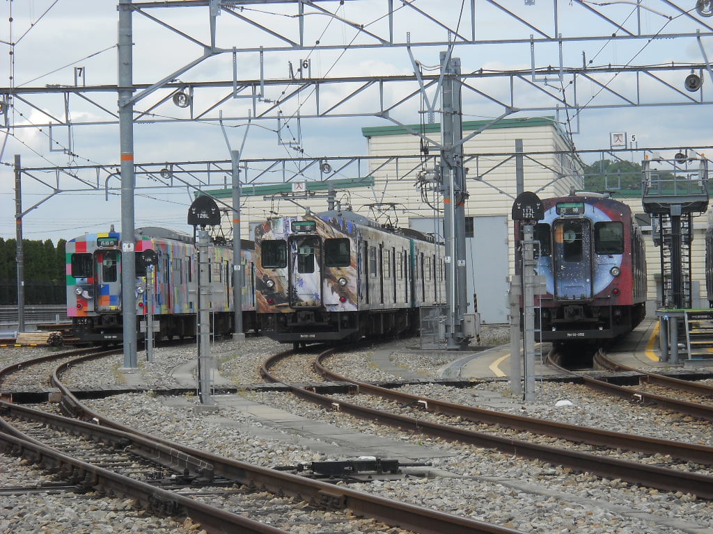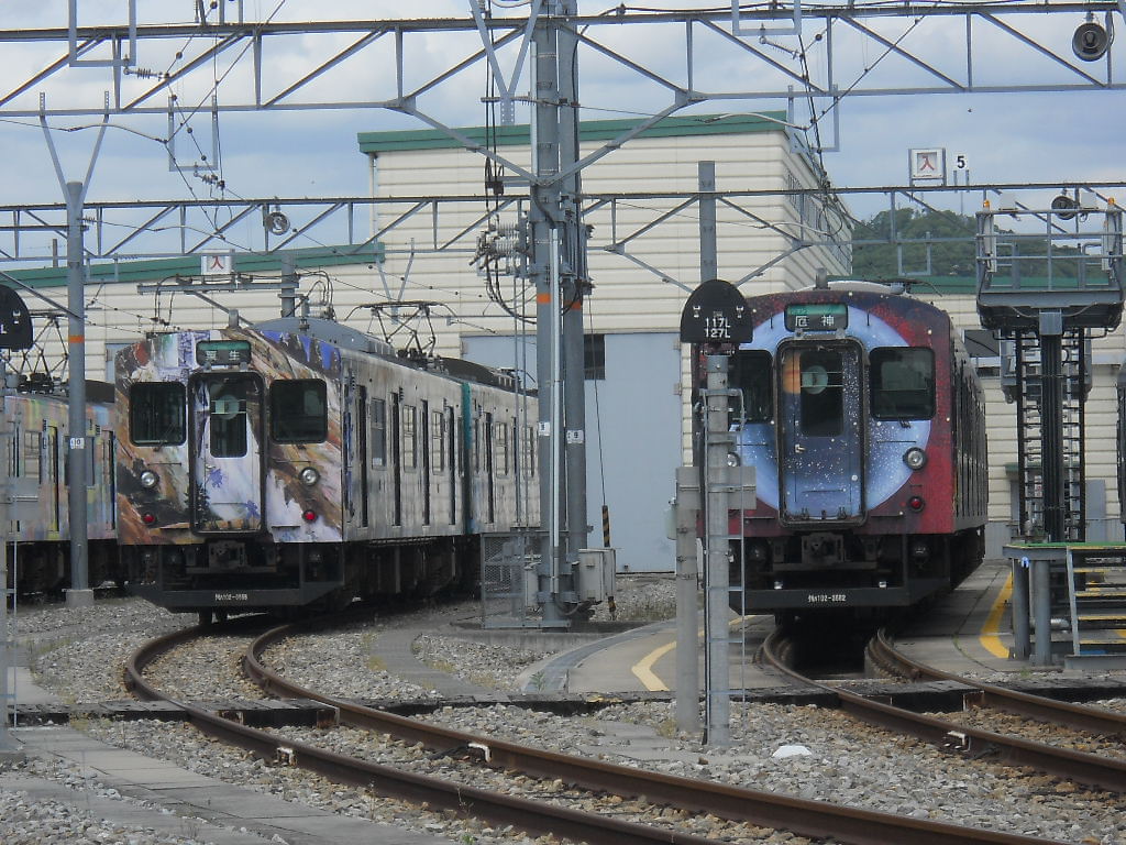 架線柱が顔に刺さりましたが左からM5、M2、M8編成。