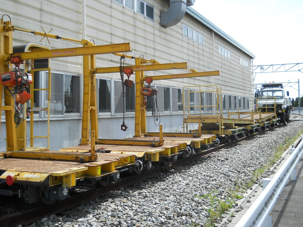 奥の軌陸両用車の車体はなんとベンツでした。教えてくれたJRの方の苦笑いした顔が印象的でした。