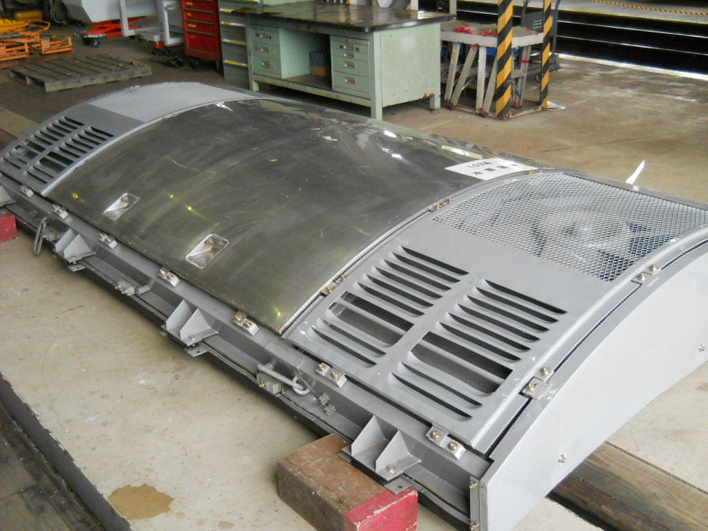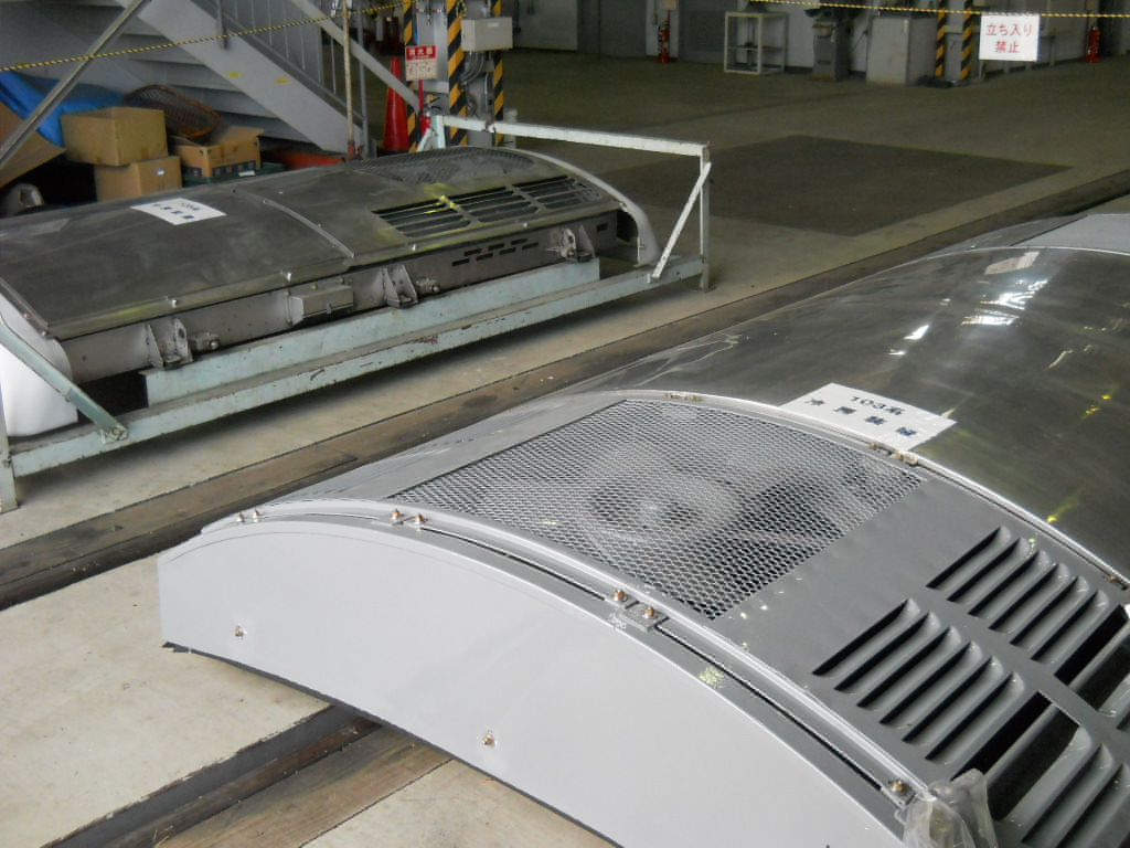 展示品の見学の続きからになります。こちらは125系屋根上の冷房装置。