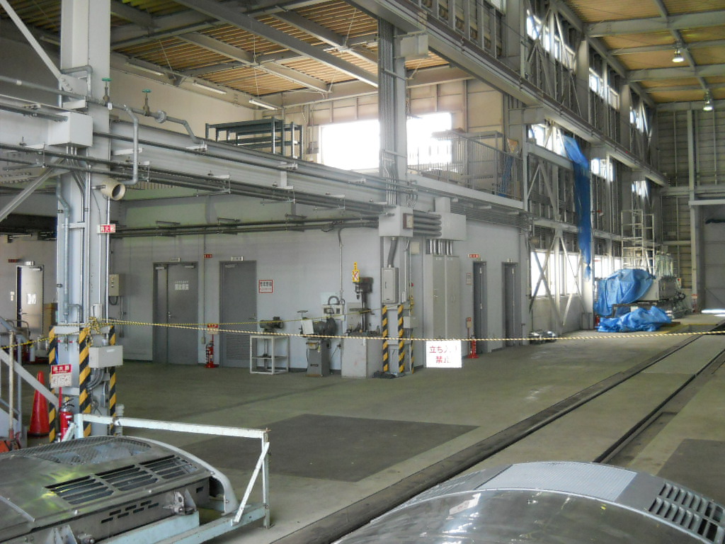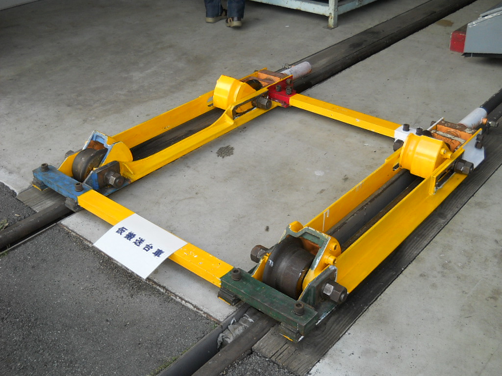 「仮搬送台車」の案内。おそらく台車を抜いた車両に履かせるのでしょうか。