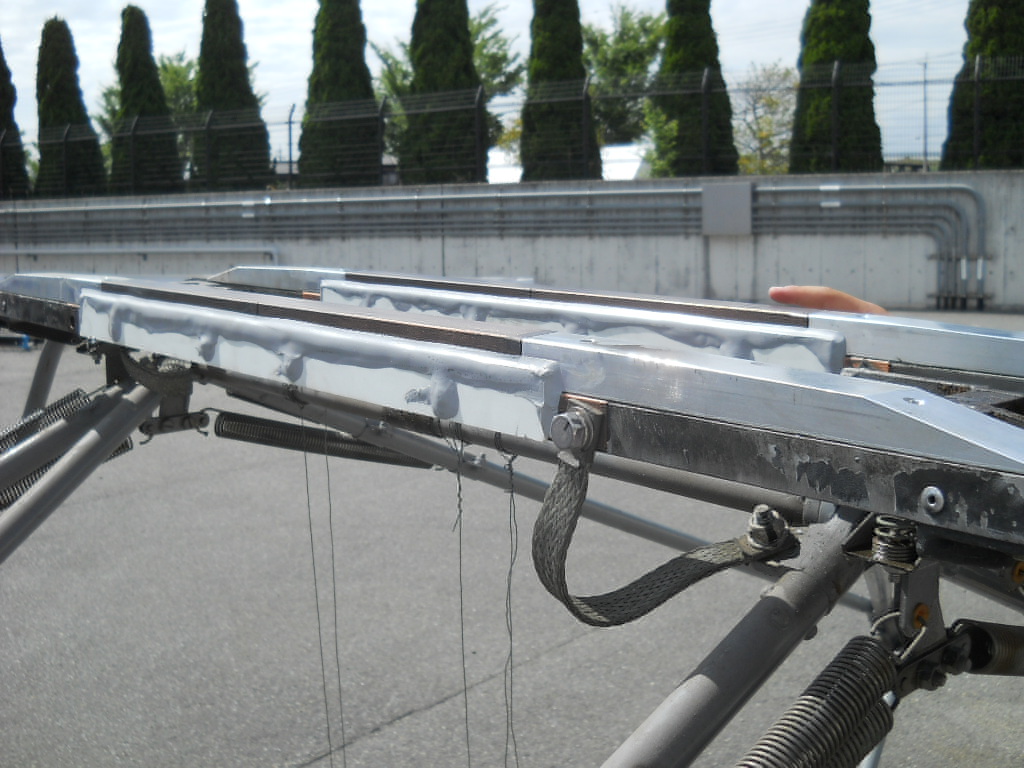 パンタグラフの擦り板部分。普段は絶対こんな近くで見れませんよ。