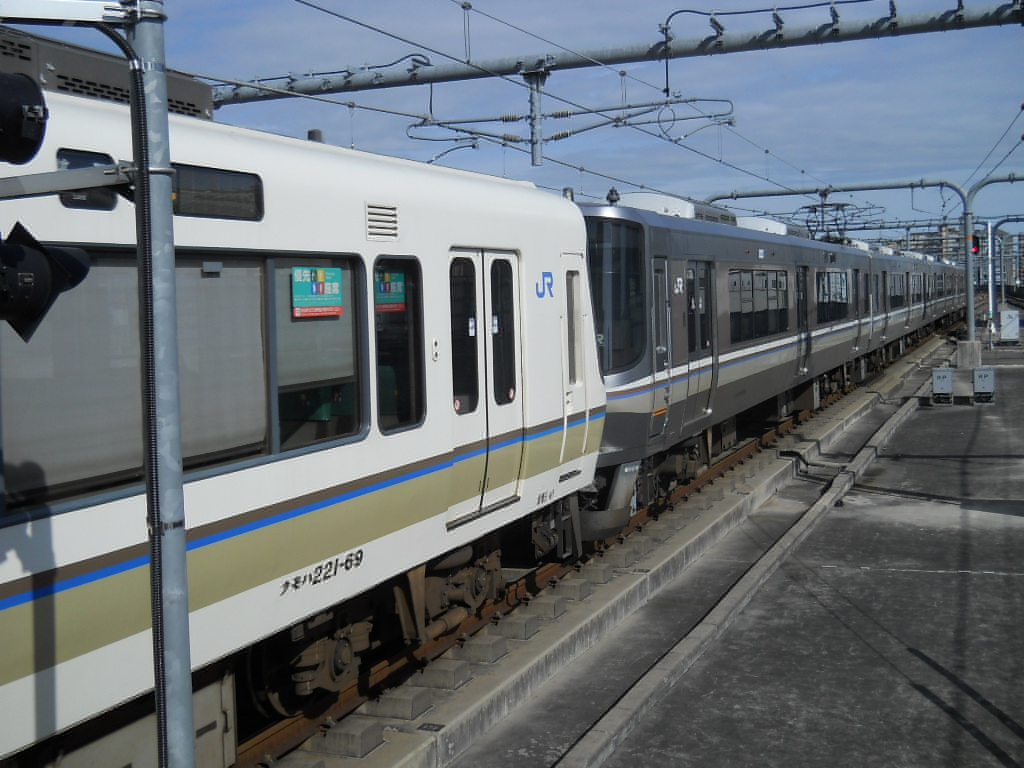 留置線にいた本線の221系と223系。これが走ってるのも見たかった。