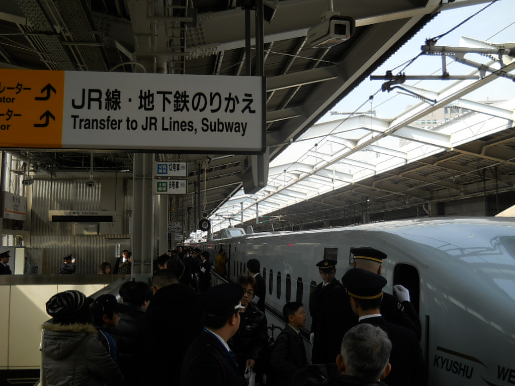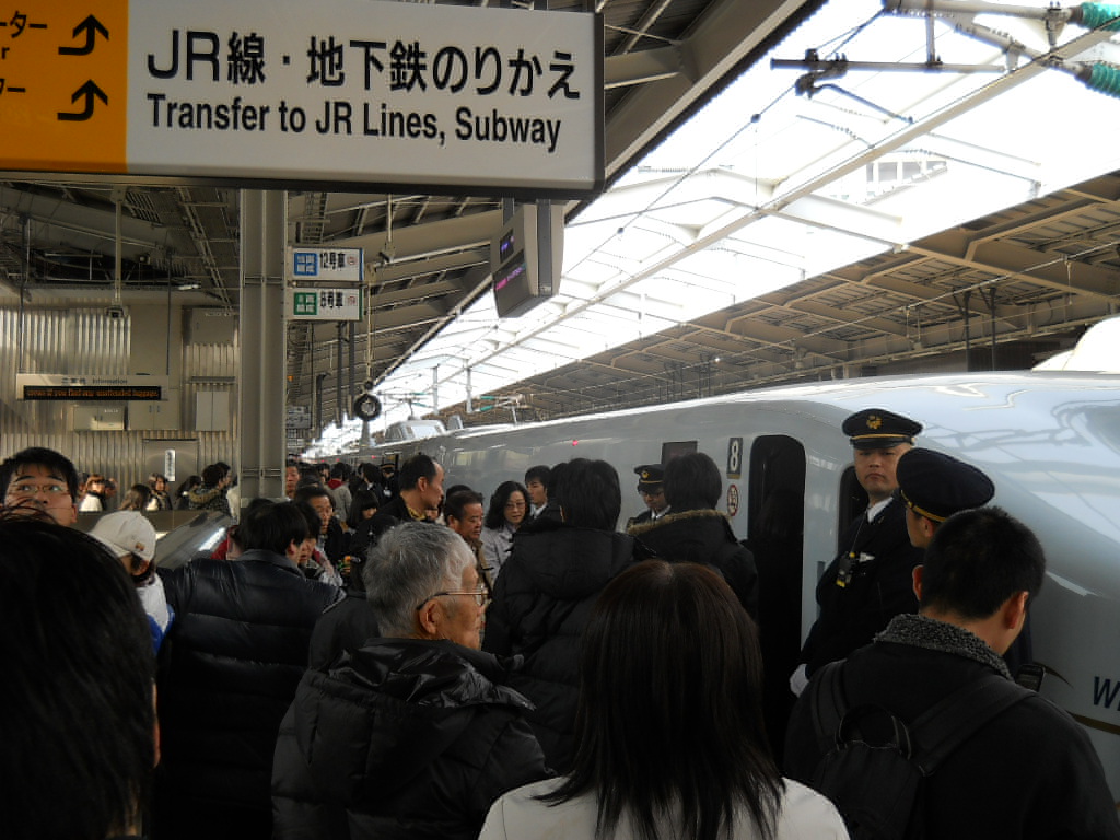 九州からの1番列車とあって、ホームはこの人だかり。