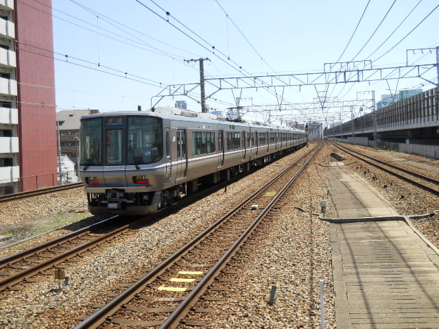 完全にミスってますが久しぶりに本線の223系が見れました。V41編成先頭。