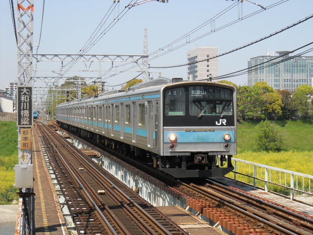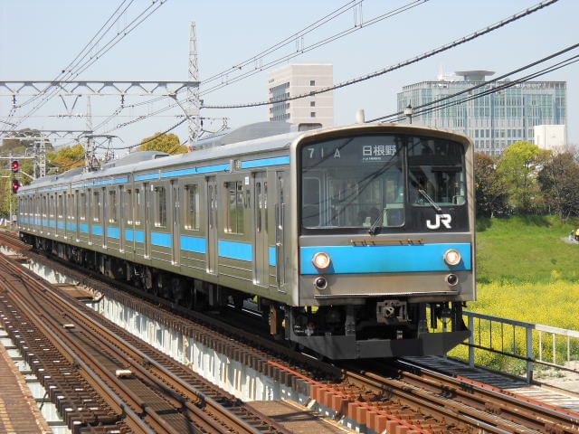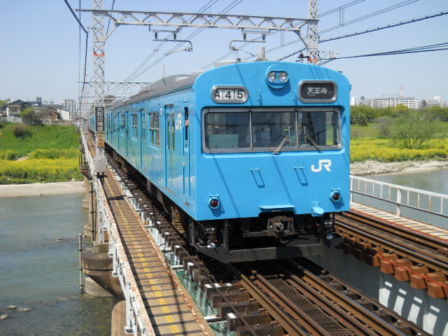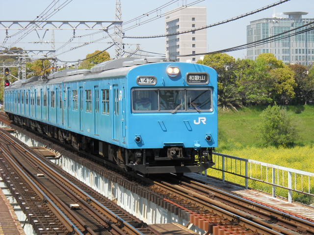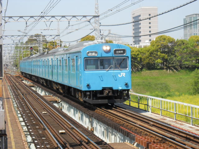 何回も見てきたスカイブルーの103系。そういや205系はひきこもり?(笑)