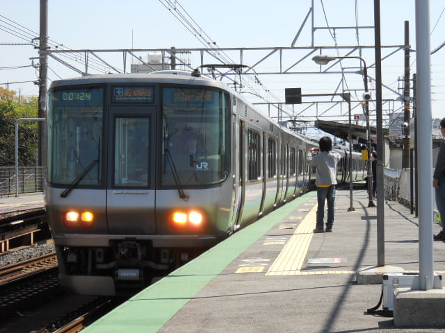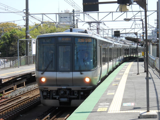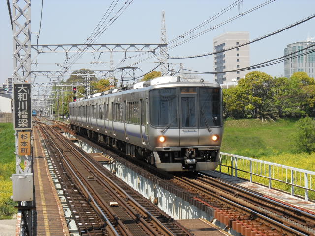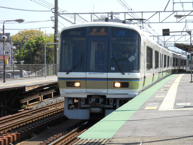阪和線快速の221系。快速は浅香駅を通過していきます。