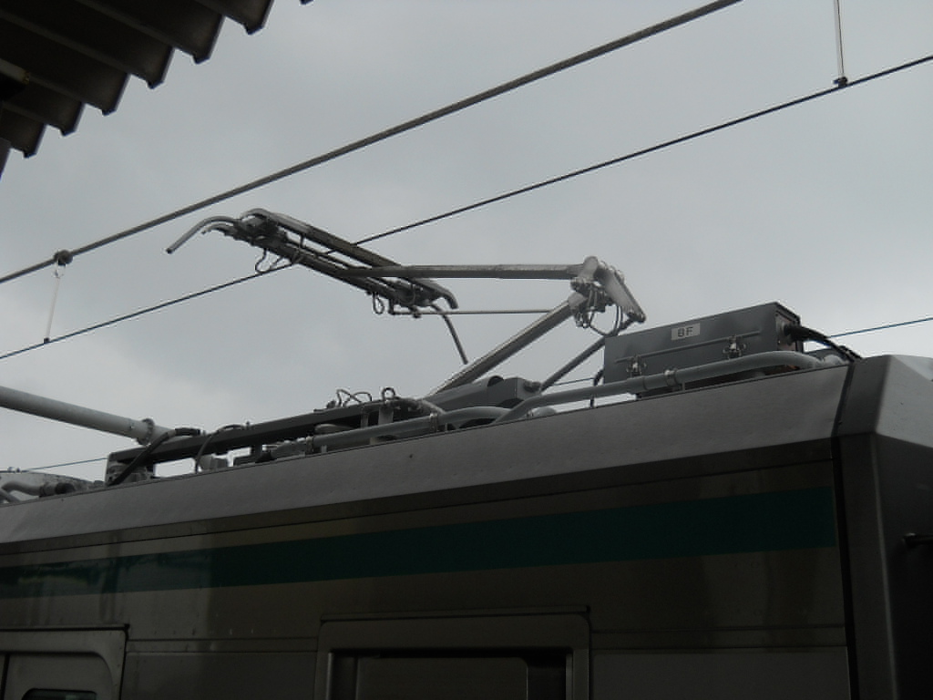 真っ暗ですけど雨は降ってませんよ? パンタグラフ。