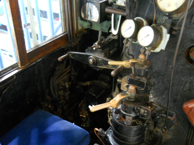 蒸気機関車の運転席。こちらは機関士側。
