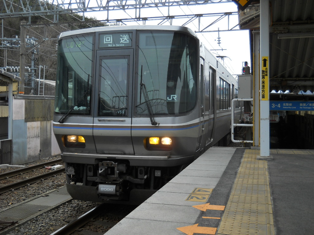 木ノ本方から回送表示の223系2000番代V59編成が入線です。
