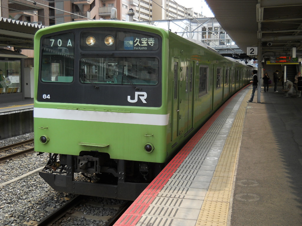ウグイス色の201系はクハ200-64以下6両の編成でした。