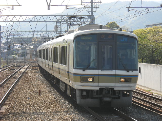 上り本線快速の221系。前面に柱が刺さりはしましたが(汗)。
